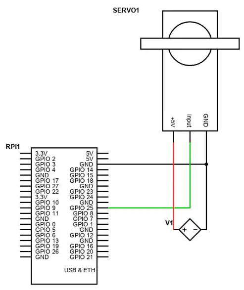 請注意,Raspberry Pi不應為伺服提供電壓。相反,使用外部電源來驅動伺服電機,因為Raspberry Pi的GPIO引腳可能無法提供足夠的電源來使電機以可接受的速度轉動。